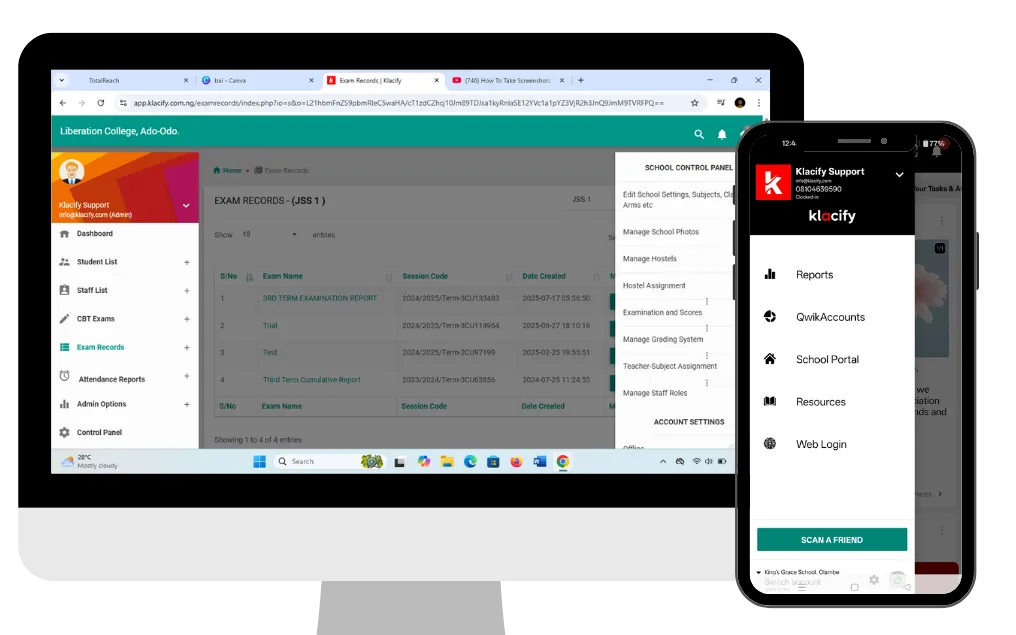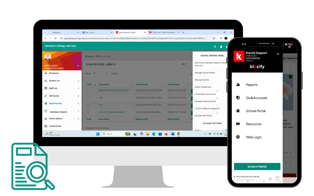 With Klacify, you can manage your entire school — monitor teachers, track attendance, conduct CBT, track fee payment, process results, and engage parents — right from your mobile phone. No IT skills needed. You simply focus on what matters most – growing your school.